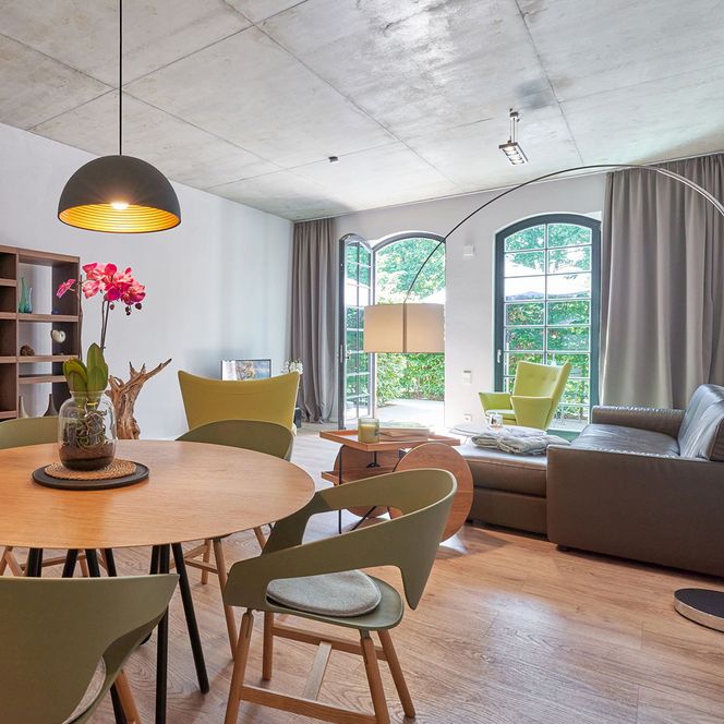 Mit Blick auf das Wasser, stilvollem Design und hochwertiger Ausstattung laden die Ferienlofts dazu ein, die Seele baumeln zu lassen und den Alltag hinter sich zu lassen. Großzügige Fensterfronten öffnen den Raum zur Natur hin, während warme Materialien und klare Formen eine Atmosphäre zum Wohlfühlen schaffen.