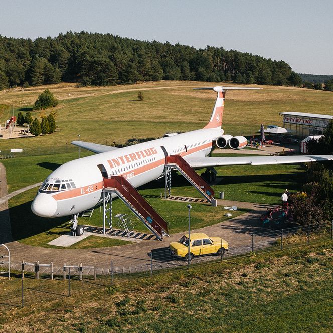 Am Fuße des Gollenbergs erwartet Besucher ein weiteres Highlight: die legendäre „Lady Agnes“, ein Langstreckenflugzeug vom Typ Iljuschin Il-62. Nach ihrer spektakulären Landung 1989 fand sie hier ihre letzte Heimat – heute ist sie Ausstellungsort, Standesamt und Wahrzeichen zugleich.