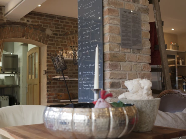 Von der Terrasse hat man einen herrlichen Blick in die Landschaft und kann u.a. Wild aus dem umliegenden Wäldern des Natursparks Nuthe-Nieplitz genießen. Die Küche orientiert sich an den Jahreszeiten und es werden zudem regionale Zutaten verwendet. Vorzugsweise kommen die Erzeugnisse aus dem eigenen Garten und können zu erlesenen deutschen Weinen genossen werden.